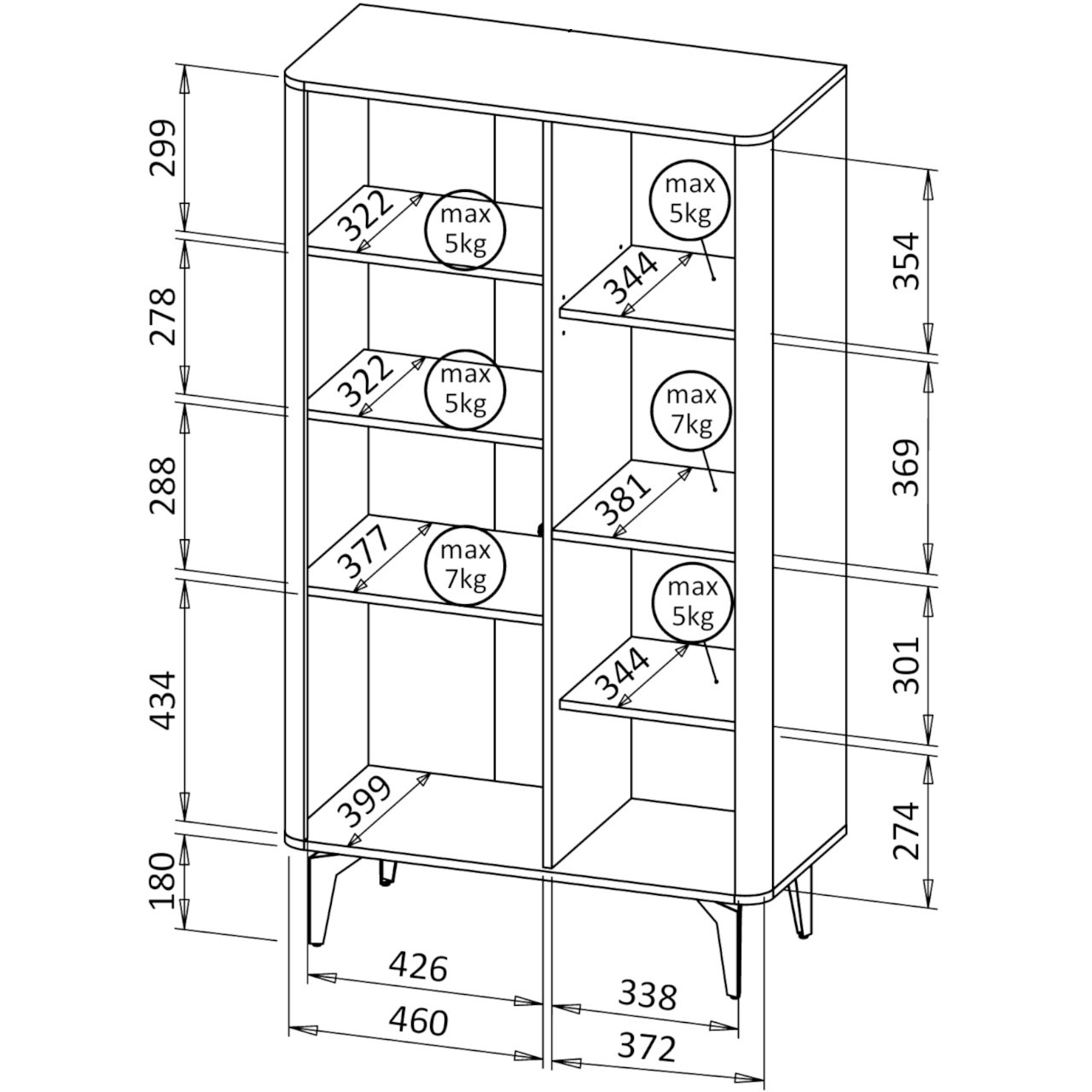 | Nogi | Metalowe, w kolorze czarnym (18cm) | |